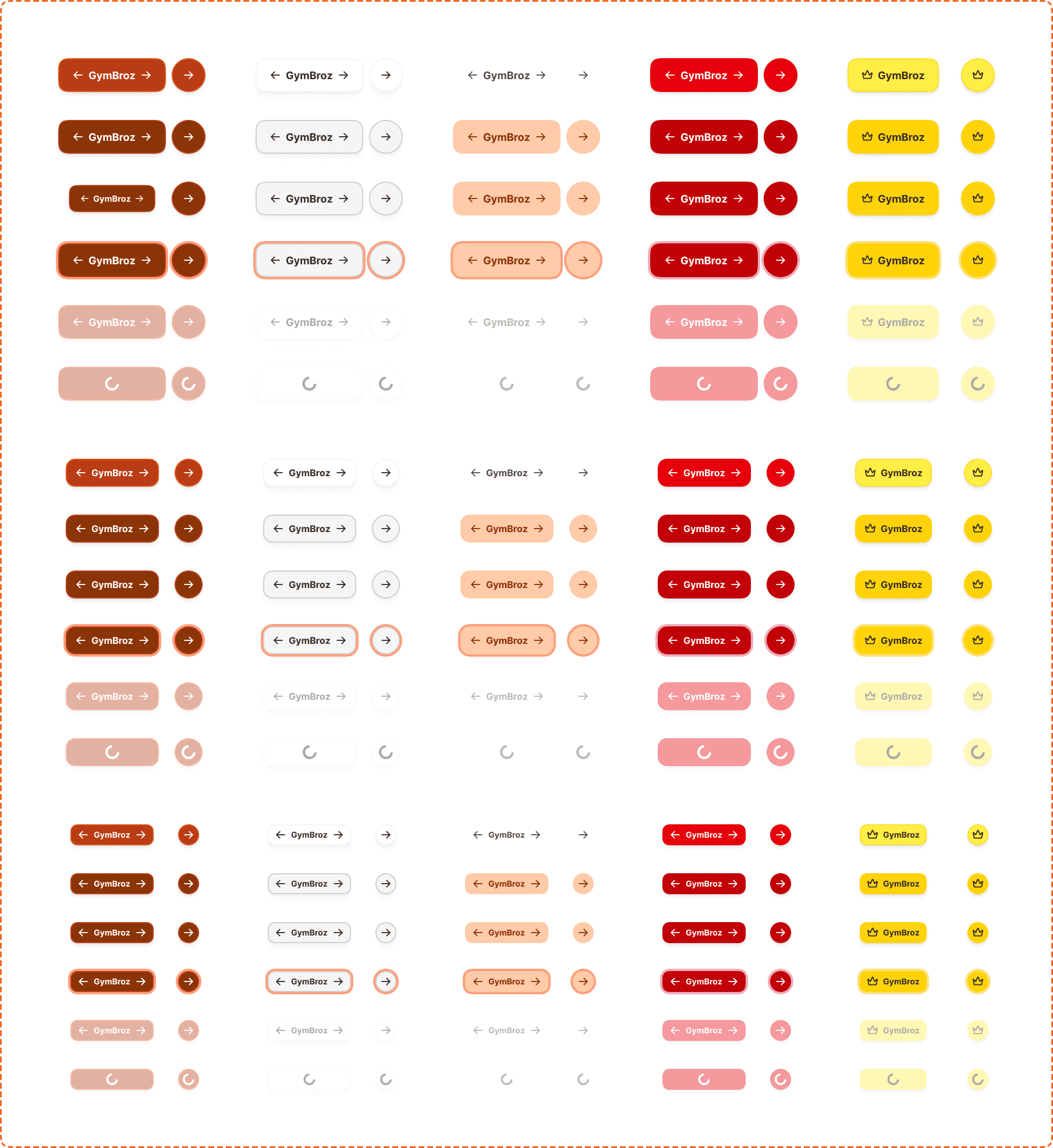 A button lets the user perform an action with a tap or a click. It is the most fundamental interactive element in GymBroZ, from starting a workout to saving a set to confirming a PR.