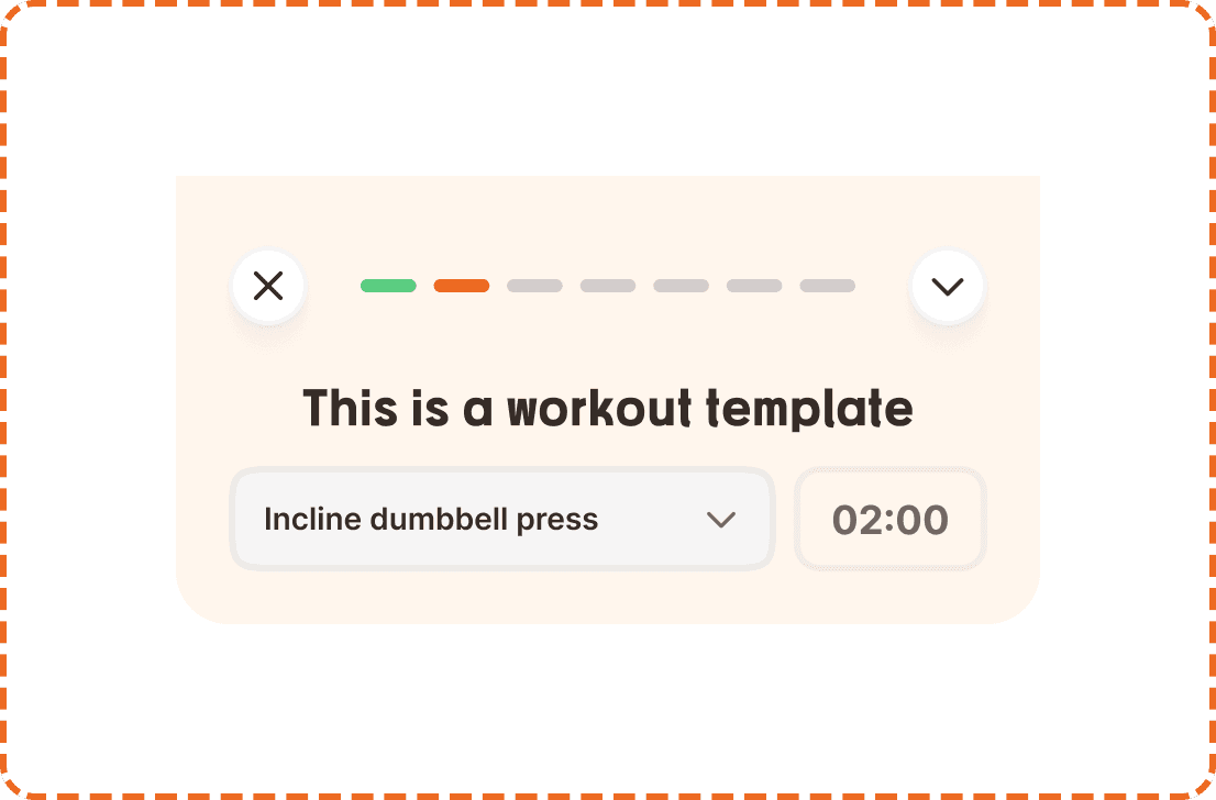 This component is visible throughout the entire duration of a workout. It answers three critical questions at a glance: "How far am I through the workout?" (stepper), "What exercise am I on?" (exercise selector), and "How long is my rest?" (timer). It is the command center of the in-workout experience.